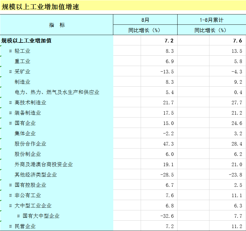 2025年1-8月广西规模以上工业增加值增速