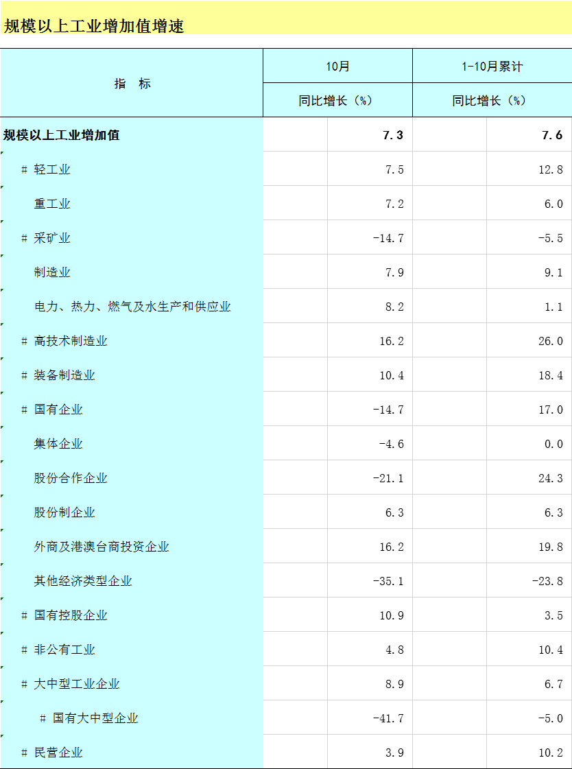 全区工业生产数据