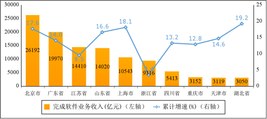 图6 2023年软件业务收入前十省市增长情况