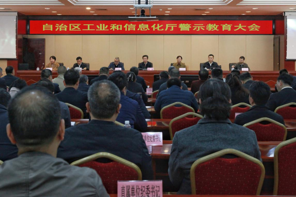 1月29日,自治区工业和信息化厅召开全厅警示教育大会,深入学习贯彻习近平总书记关于党的建设的重要思想、关于党的自我革命的重要思想和习近平总书记关于广西工作论述的重要要求,认真落实自治区纪委十二届六次全会、蓝天立等案件以案促改促治工作动员部署会议、全区领导干部警示教育大会部署要求,持续深化以案说德、以案说纪、以案说法、以案说责,以永远在路上的坚韧和执着把党的自我革命进行到底。厅党组书记、厅长袁煌主持会议并讲话。