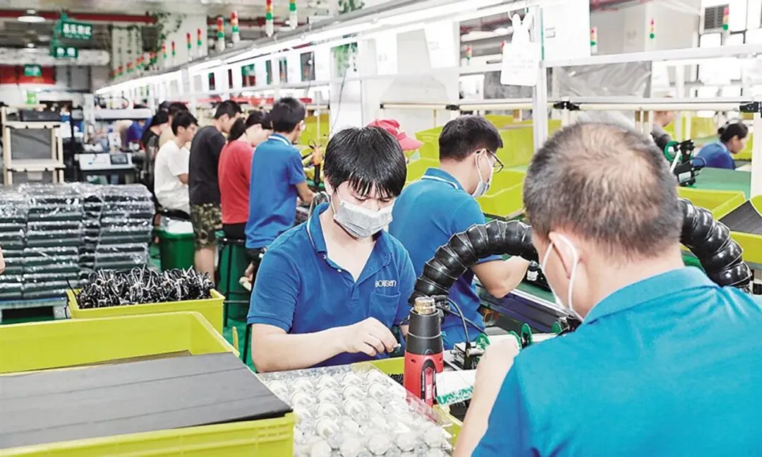 北流市邦泽创科电器有限公司是一家集研发、设计、生产、销售于一体的国家高新技术创新型企业,工人们正在流水线上忙碌着生产出口国外的订单电器。(玉林市融媒体中心记者 陈东 摄)