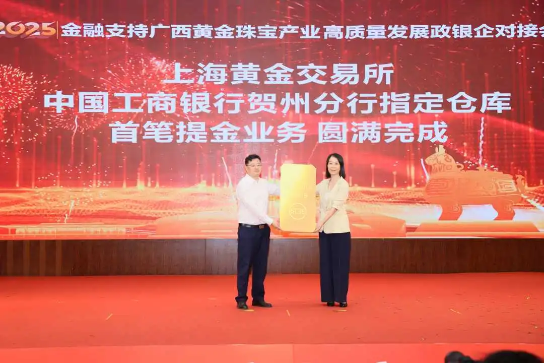 上海黄金交易所工商银行贺州分行指定仓库首笔提金业务完成。黎豪图摄