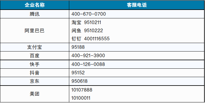 ② 如在查询过程中遇到其他问题,用户首先可尝试通过查询页面提供的使用指南解决。如果问题仍然不能解决,可拨打相应互联网企业的客服电话(见文末附表)。