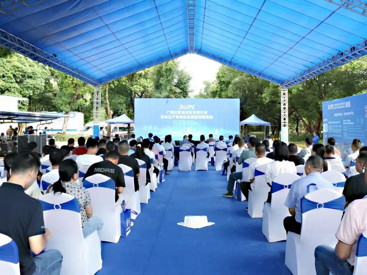 自治区公安厅治安总队、广西消防救援总队有关业务负责同志,自治区工业和信息化厅办公室、经济运行处、装备工业处、军民融合处有关同志,柳州市和柳北区人民政府及有关部门领导,各设区市及辖区布局有民爆生产、销售企业的县(市、区)级民爆行业主管部门分管领导及业务负责人,活动协办单位的职工,共230余人现场观摩此次演练。