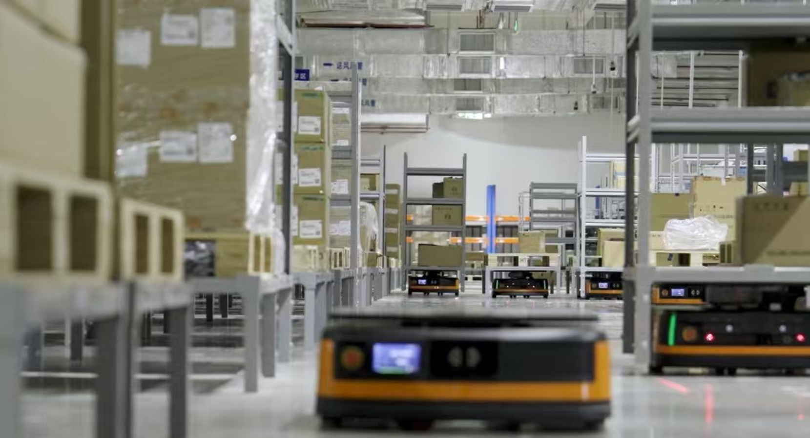 2.智能分拣调度:AGV机器人搭载UWB定位技术,结合AI路径规划算法,与灯光拣选系统协同作业,提升分拣效率,减少人工操作误差。