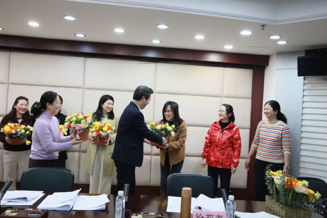 图为袁煌厅长为女职工代表送上鲜花与节日祝福