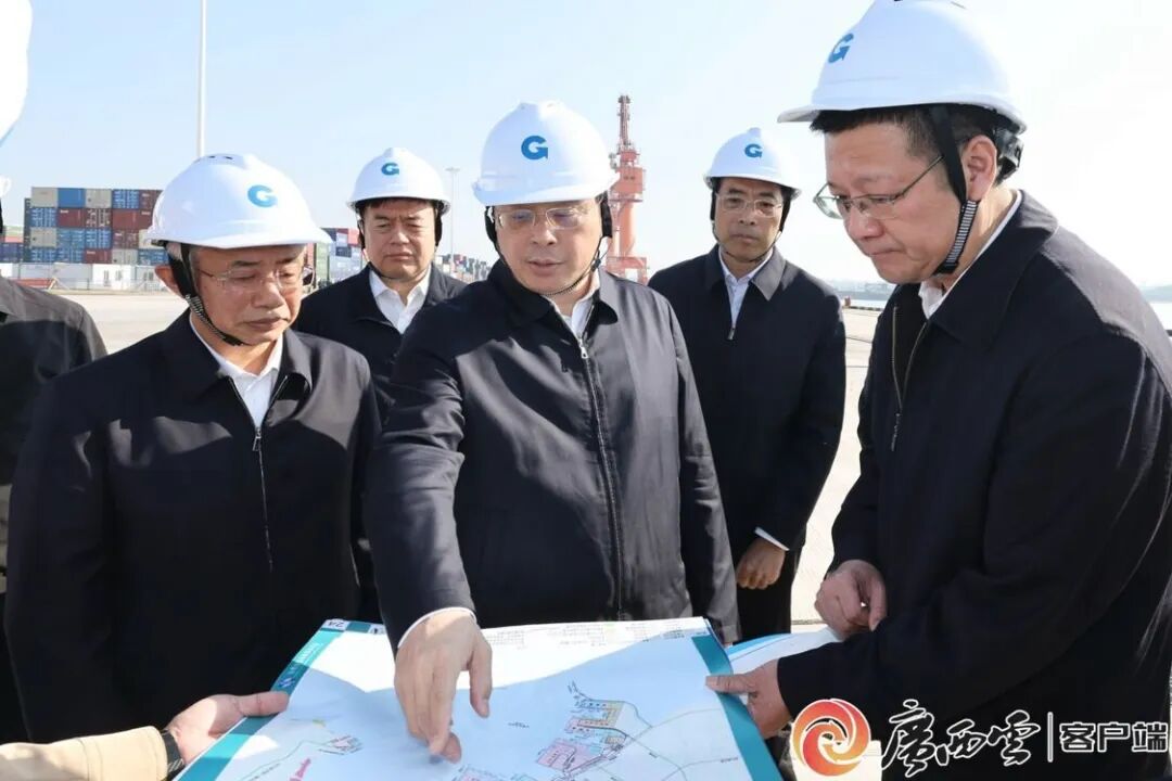 12月18日至19日,自治区主席韦韬深入玉林市,调研港口和产业园区建设、新兴产业发展、特色产业培育等工作。韦韬来到玉林海港码头,实地了解码头作业区项目规划和前期工作推进情况。广西云-广西日报记者 邓华 摄
