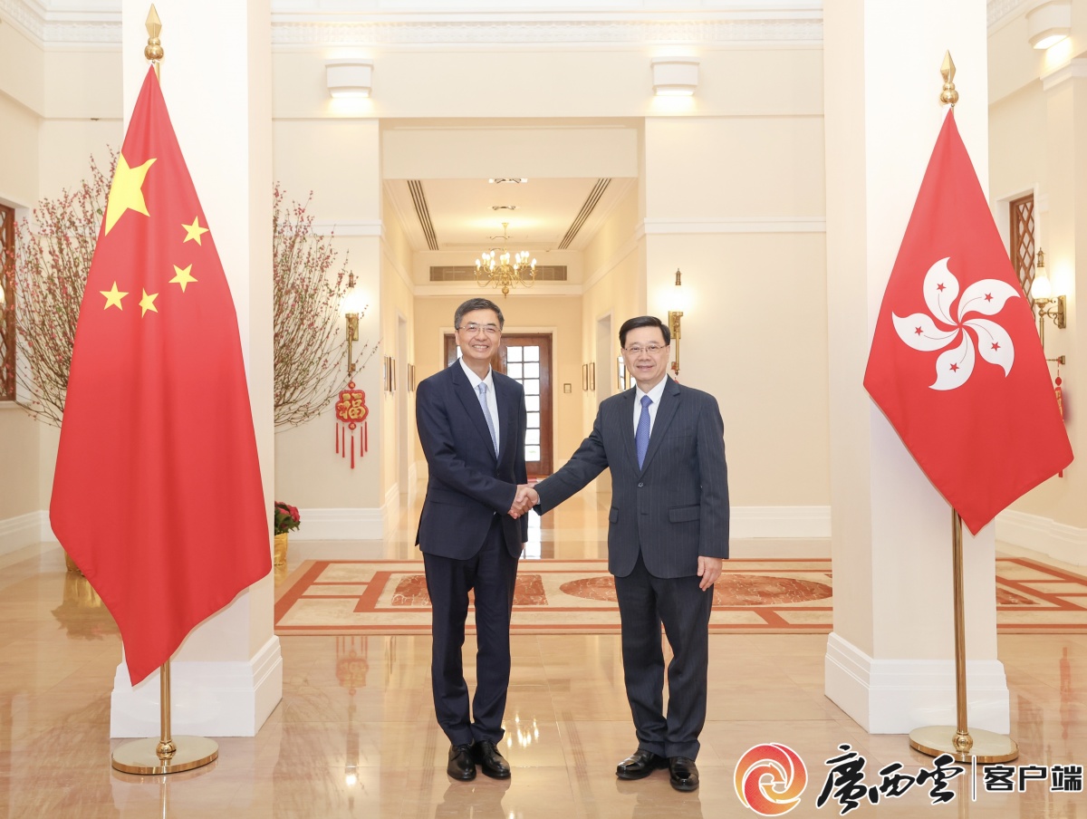 2月25日,自治区党委书记、自治区人大常委会主任陈刚在香港会见香港特别行政区行政长官李家超。广西云-广西日报记者 何学俏 摄
