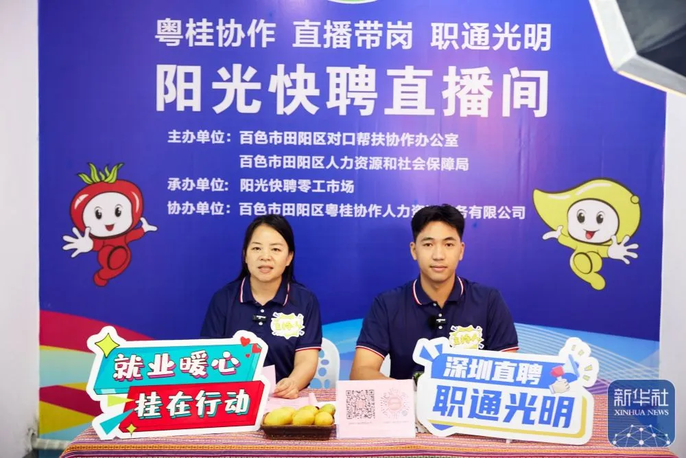 ↑田阳区“阳光快聘”零工市场工作人员进行直播带岗