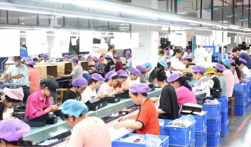 北流市邦泽创科电器有限公司是一家集研发、设计、生产、销售于一体的国家高新技术创新型企业,工人们正在流水线上忙碌着生产出口国外的订单电器。(玉林市融媒体中心记者 陈东 摄)