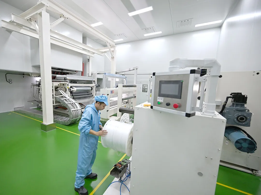 “这是盈博莱高速特种隔膜研发生产基地项目落户南宁以来成功生产的首批流延膜,具备耐高温、耐穿刺、绝缘等重要特性,经过多重工序后,可应用在新能源电池的生产中。”盈博莱人事行政主管林钿湉介绍,这些薄薄的隔膜在锂电池中犹如一道防火墙,隔开正负极,防止电池短路,同时让离子顺利通过,保障电池正常充放电。