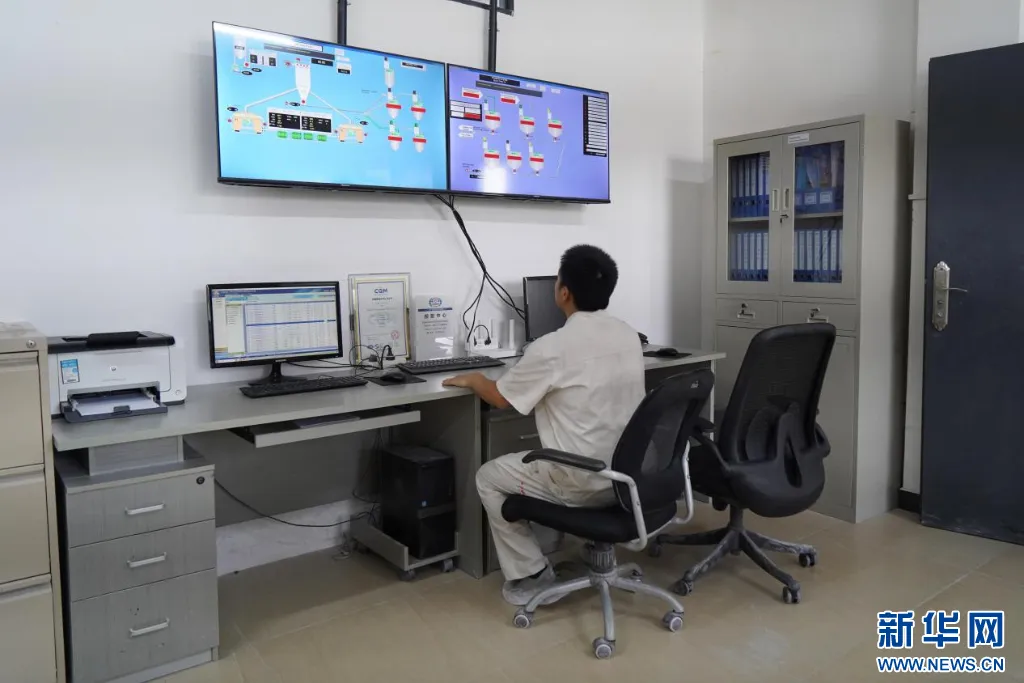 在桂广申巴公司生产车间里,现代化、智能化场景应用广泛。在数字化中控室内,工作人员轻点鼠标或手机屏幕,远处的气流磨便精准启动,粉体颗粒直径、设备转速、生产能耗等数据实时呈现。隔壁的智慧节能空压站内,6台磁悬浮空压机接受中控台的指令后,开始高速平稳运行,全程无需人工值守。