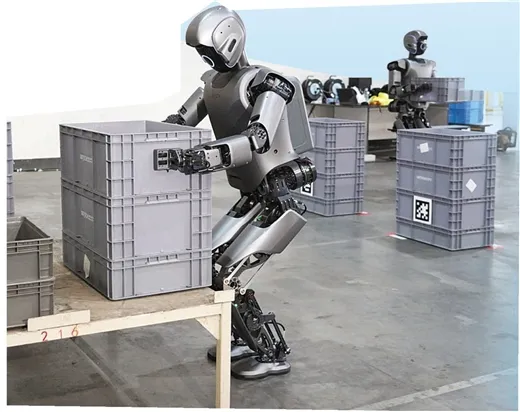 工业人形机器人在东风柳汽生产车间搬运物料(东风柳汽供图)