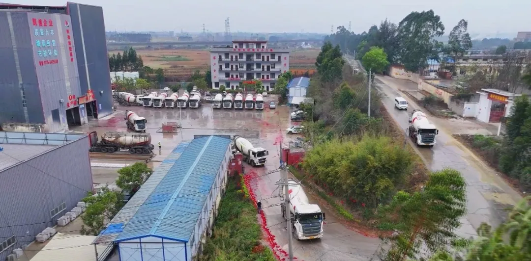 桂平市凯信新型建材有限公司运输混凝土的车辆忙碌不停。通讯员 禤绵钧 陈晓磊 摄