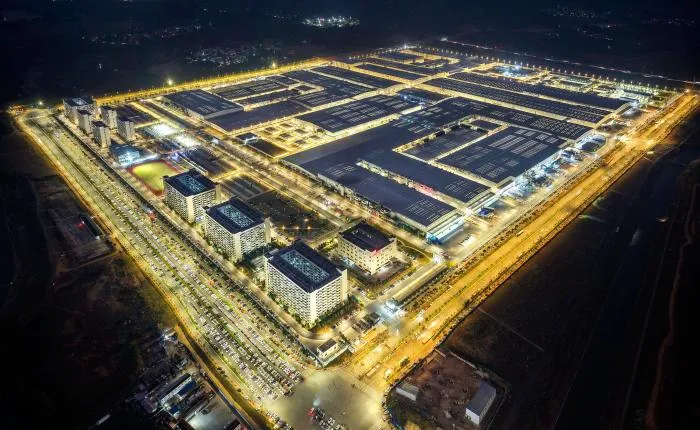 2026年2月12日,华灯初上时分,位于南宁市东部新城的广西弗迪电池有限公司厂区灯火通明,蔚为壮观。周军 摄
