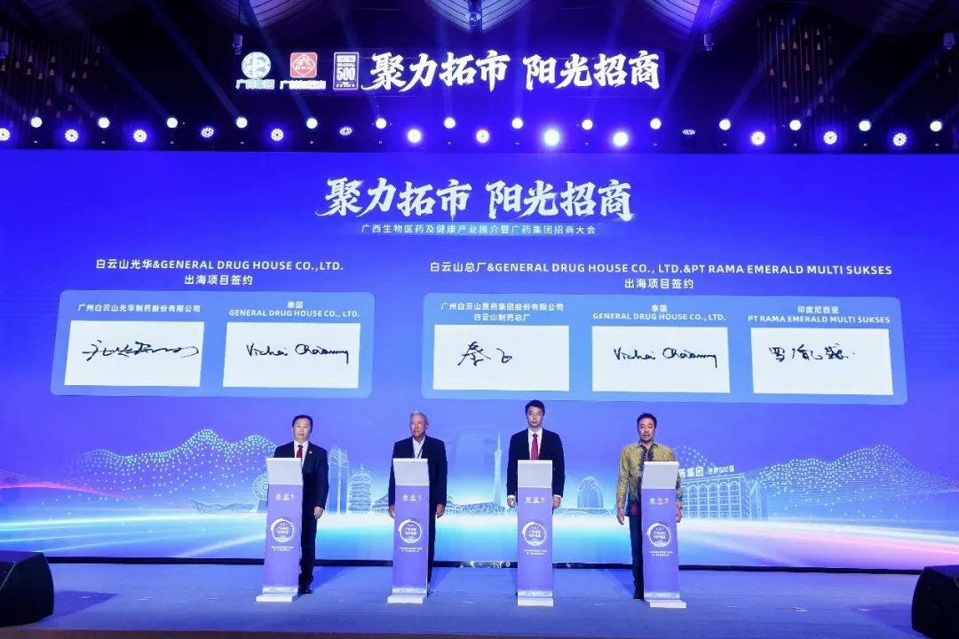 当天的大会上,广药集团还进行了多个海外市场拓展项目的签约。其中,白云山光华公司、白云山制药总厂分别与泰国通用药业进行战略合作签约;白云山制药总厂与印尼拉玛翡翠多元有限公司进行合作签约;王老吉药业与广西鑫穗贸易公司进行战略合作签约。