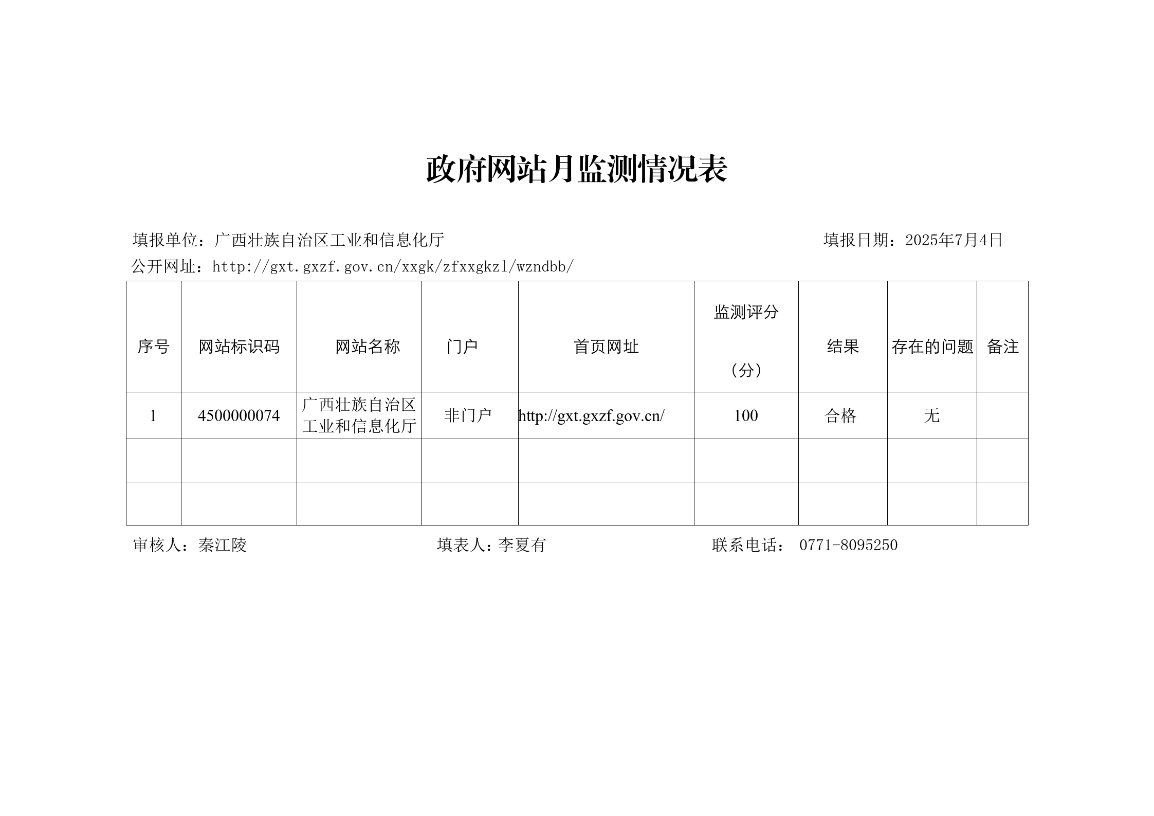 【月度监测】自治区工业和信息化厅网站6月监测情况表