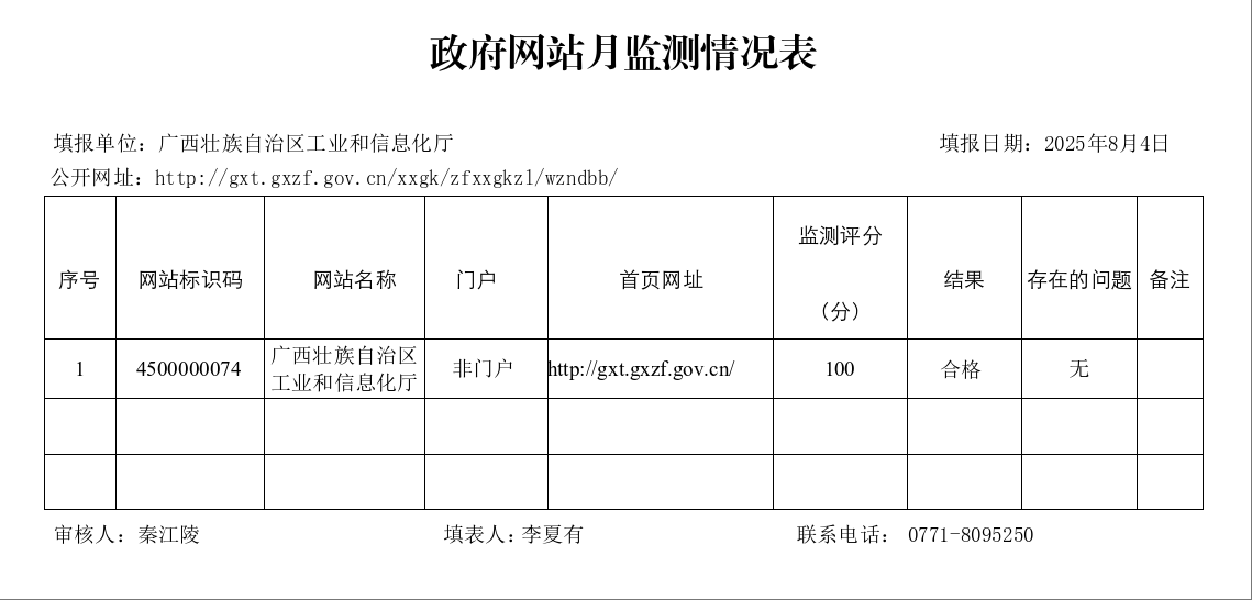 【月度监测】自治区工业和信息化厅网站7月监测情况表