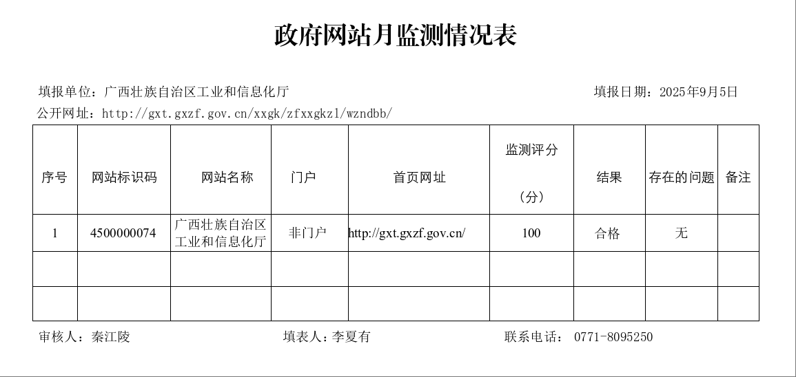 【月度监测】自治区工业和信息化厅网站8月监测情况表