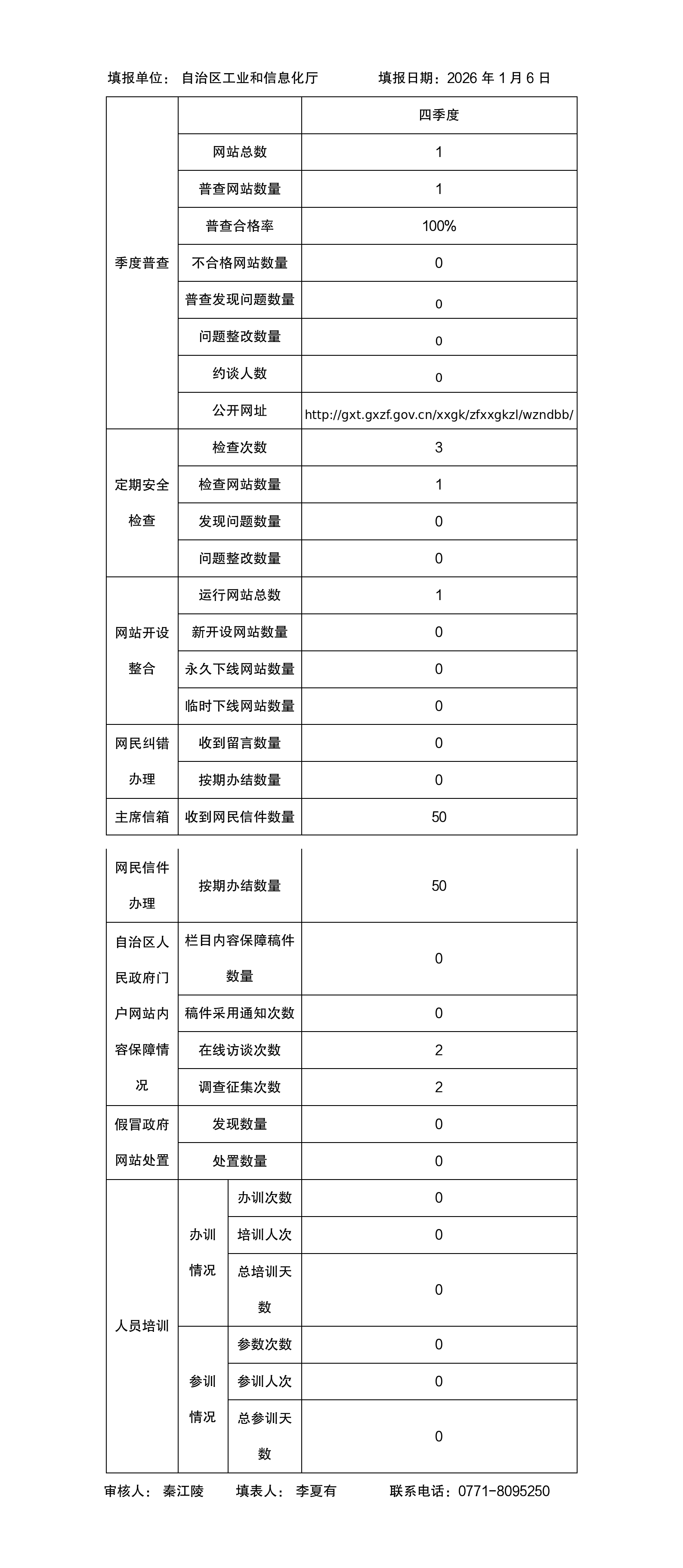 【季度普查】自治区工业和信息化厅网站监管2025年第四季度普查报表