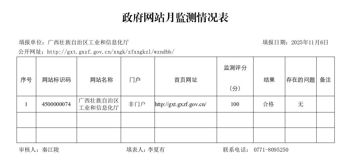 【月度监测】自治区工业和信息化厅网站10月监测情况表