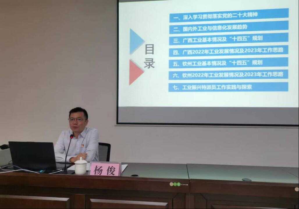 钦州市工作队副队长杨俊做“工业振兴实践经验分享”专题辅导