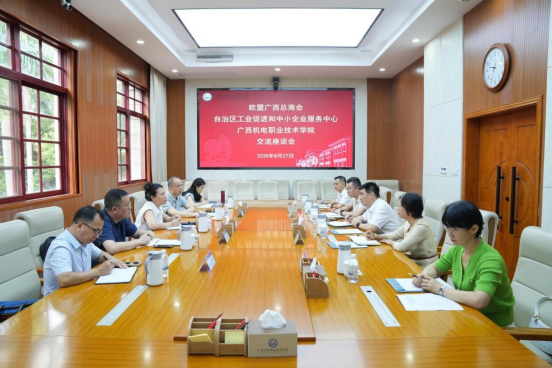 为贯彻落实工业和信息化部办公厅《关于开展中小企业出海服务专项行动的通知》要求,加强企业出海服务供给,2025年8月27日,自治区工业和信息化厅党组成员,自治区工业促进和中小企业服务中心党委书记、主任龙晗带队,会同欧盟广西总商会会长黄萍在桂开展跨境产教融合及企业出海服务系列调研。