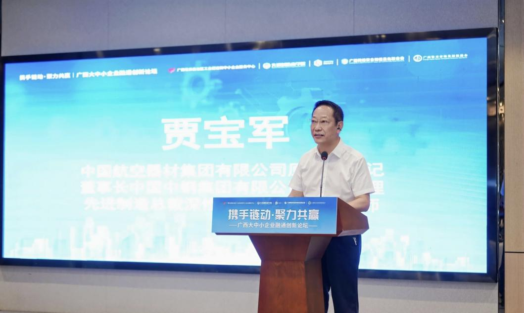 本次论坛旨在深入贯彻落实国家及自治区关于支持中小企业“专精特新”发展和促进大中小企业融通创新的决策部署,推动形成资源共享、政企协同、互利共赢的产业生态体系,助力广西工业振兴和中小企业高质量发展。自治区工业促进和中小企业服务中心副主任潘海源,中国航空器材集团有限公司原党委书记、董事长,中国中钢集团有限公司原总经理贾宝军出席论坛并致辞。