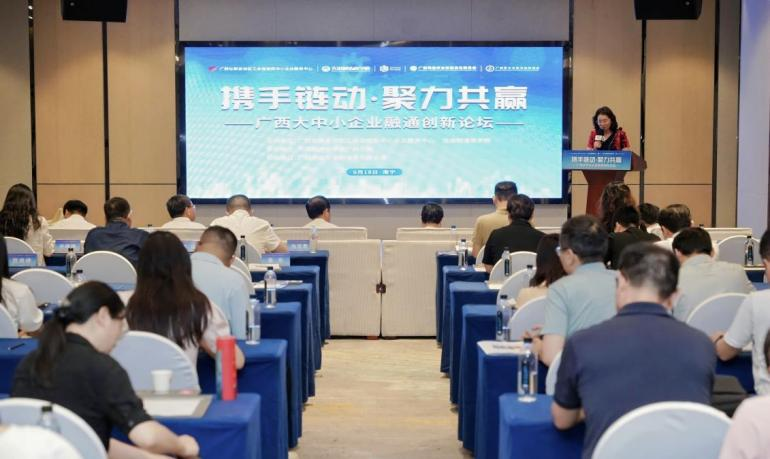 9月18日,由自治区工业促进和中小企业服务中心主办的“携手链动·聚力共赢”广西大中小企业融通创新论坛在南宁成功举办。来自区内外新一代信息技术、装备制造等领域的龙头企业高管、中小企业代表、国家级专家及各地市工信系统相关负责人近百人齐聚一堂,共话产业链协同创新与融通发展新路径。