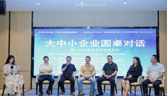 作为论坛的特别环节,期间举办了两场大中小企业圆桌对话,分别聚焦新一代信息技术与装备制造两大产业链发展进行深入交流。与会嘉宾围绕“龙头企业技术生态开放”“跨境数字化场景落地”“装备制造低碳化转型”“中小企业借力龙头出海”等议题广泛探讨技术开放、场景合作、产能协同、海外布局等务实路径,形成“生态共建、风险共担、利益共享”的共识。