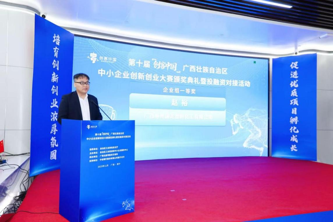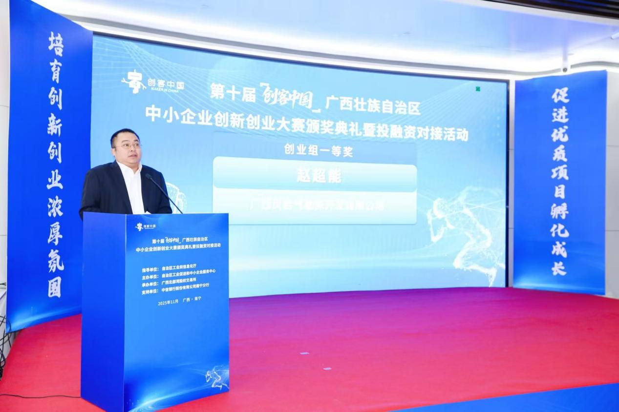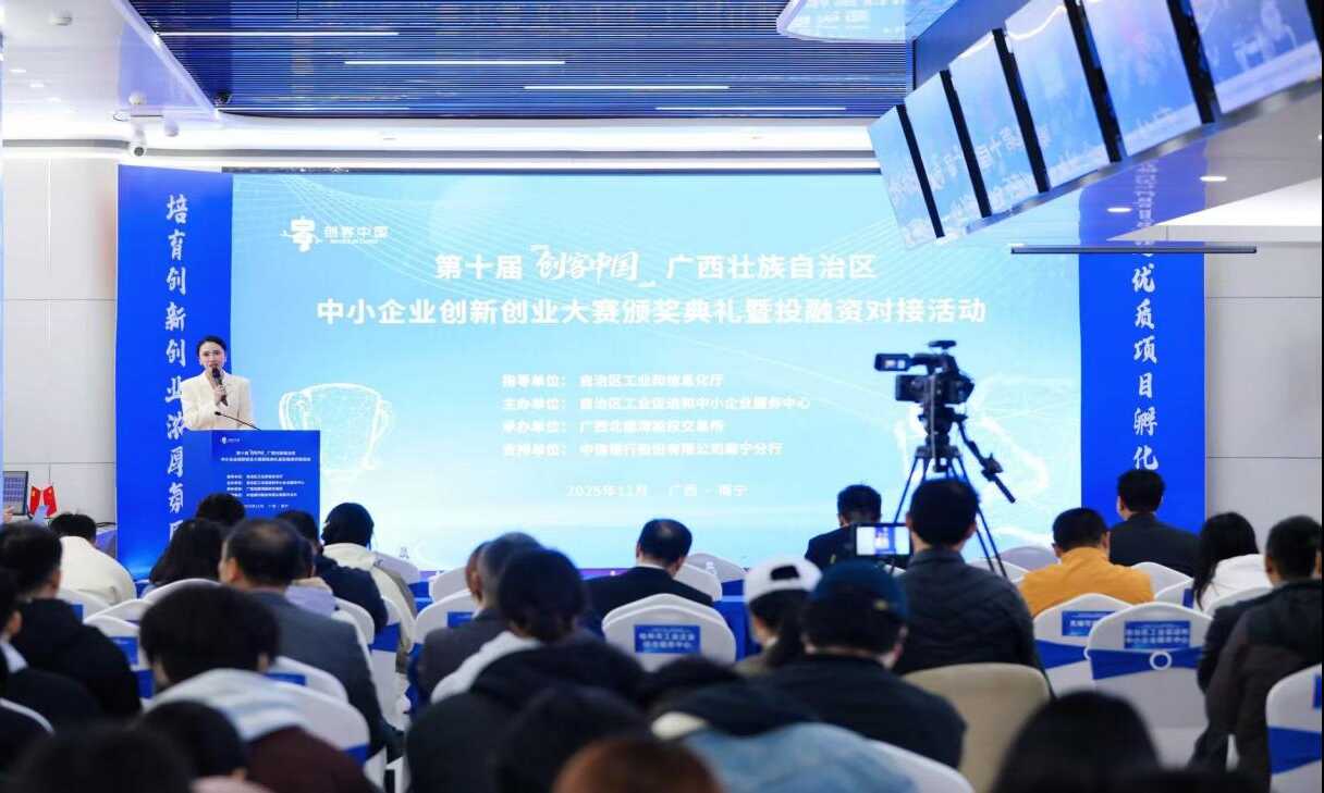 11月18日,第十届“创客中国”广西壮族自治区中小企业创新创业大赛颁奖典礼在南宁隆重举行,标志着本届区域赛事圆满收官。作为广西中小企业创新创业领域的品牌赛事,本届大赛由自治区工业和信息化厅指导,自治区工业促进和中小企业服务中心主办,广西北部湾股权交易所协办,历经初赛、复赛、决赛层层选拔,最终22个优质项目脱颖而出,分获企业组与创业组一、二、三等奖。大赛不仅成为展示广西中小企业创新实力的重要窗口,更构建起覆盖“赛前—赛中—赛后”的全链条赋能服务体系,在专精特新企业培育、产融对接等方面取得显著成效。