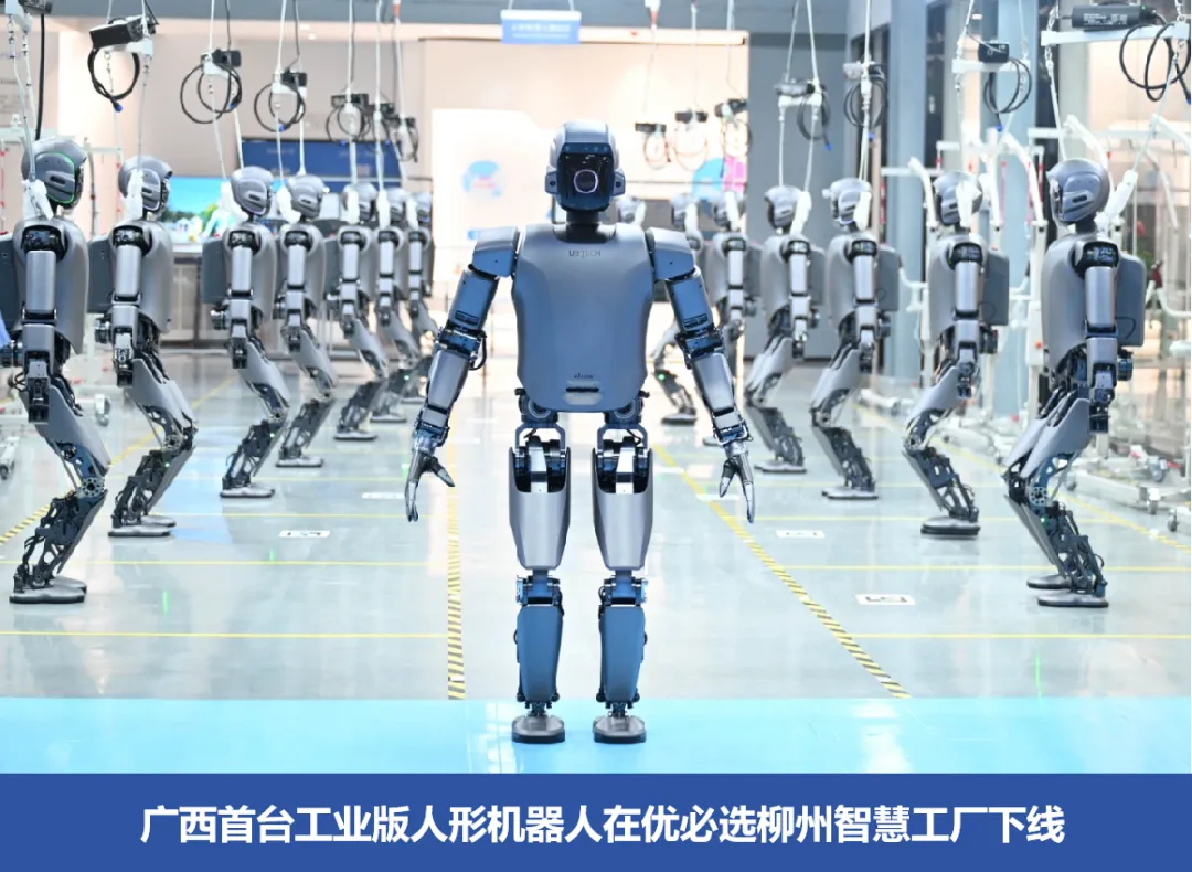 “十四五”以来,广西推动5000多家规上工业企业实施“智改数转”,2023年广西制造业数字化转型指数为91.3分、排全国第14位,成为全国进步最快的5个省份之一。特别是2025年以来,自治区提出“人工智能时代,广西不能缺席、不能落后”,加快实施“人工智能+”行动,推动人工智能赋能千行百业,突出“策略、整合、场景”,积极构建“北上广研发+广西集成+东盟应用”的发展路径。2025年1—6月,新增智能机器人、智能网联汽车、智能终端、智能软件等智能产品175个,国内首批1.7米高人形机器人在柳州量产,广西首批20台工业版人形机器人在柳州汽车智慧工厂实训使用,智能服务机器人产量45.2万套、同比增长20%,智能网联汽车16.8万辆、同比增长21%,176个工业领域垂直模型上线应用。